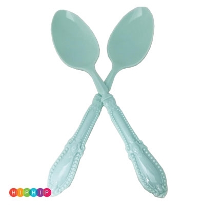 2 כפות הגשה בצבע מנטה, עשויות מפלסטיק קשיח ואיכותי במיוחד עם עיטורים בידית הכף