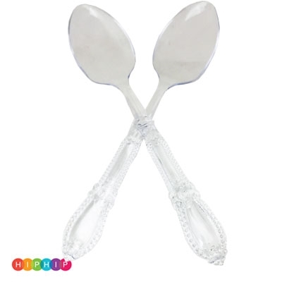 2 כפות הגשה שקוף, עשויות מפלסטיק קשיח ואיכותי במיוחד עם עיטורים בידית הכף