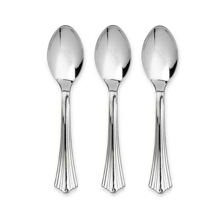 חבילת כפות בצבע כסף, עשויות מפלסטיק קשיח ואיכותי במיוחד עם עיצוב פסים בידית